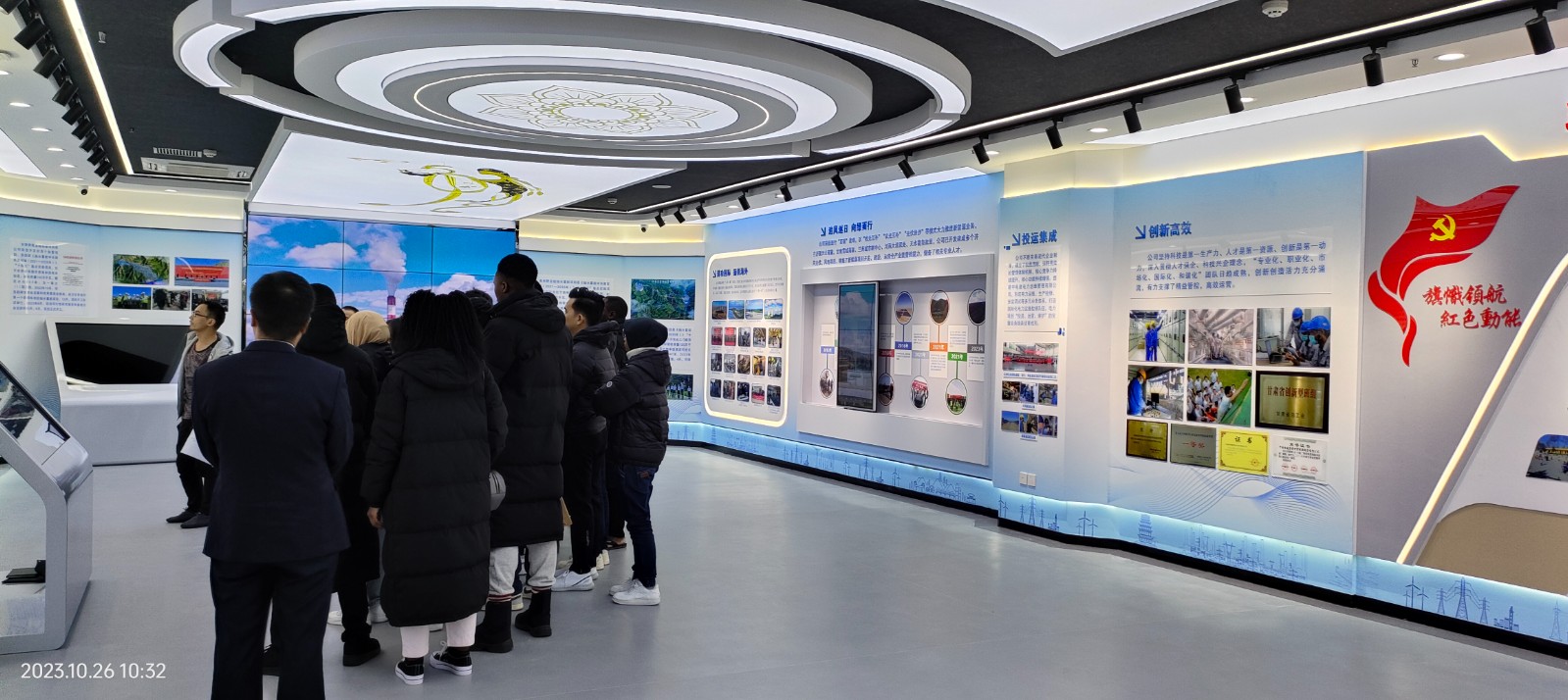 中國電集團(tuán)展廳EPC總承包由我公司惟誠建設(shè)整體策劃設(shè)計(jì)采購施工安裝建沒一體化,全面竣工落成。迎來外賓現(xiàn)場參觀品鑒企業(yè)品牌文化形象。多視角沉浸式互動(dòng)體驗(yàn)世界五百強(qiáng)企業(yè)魅力。