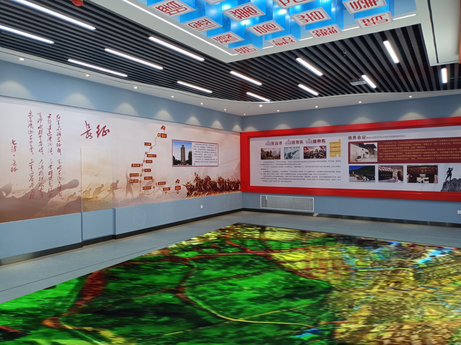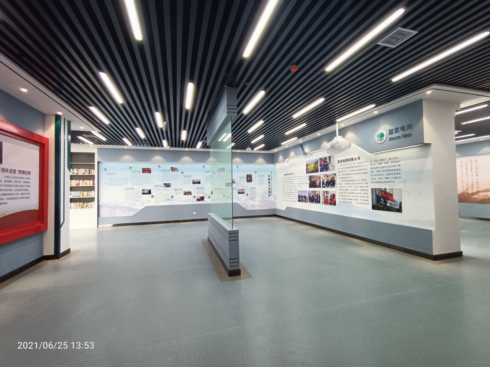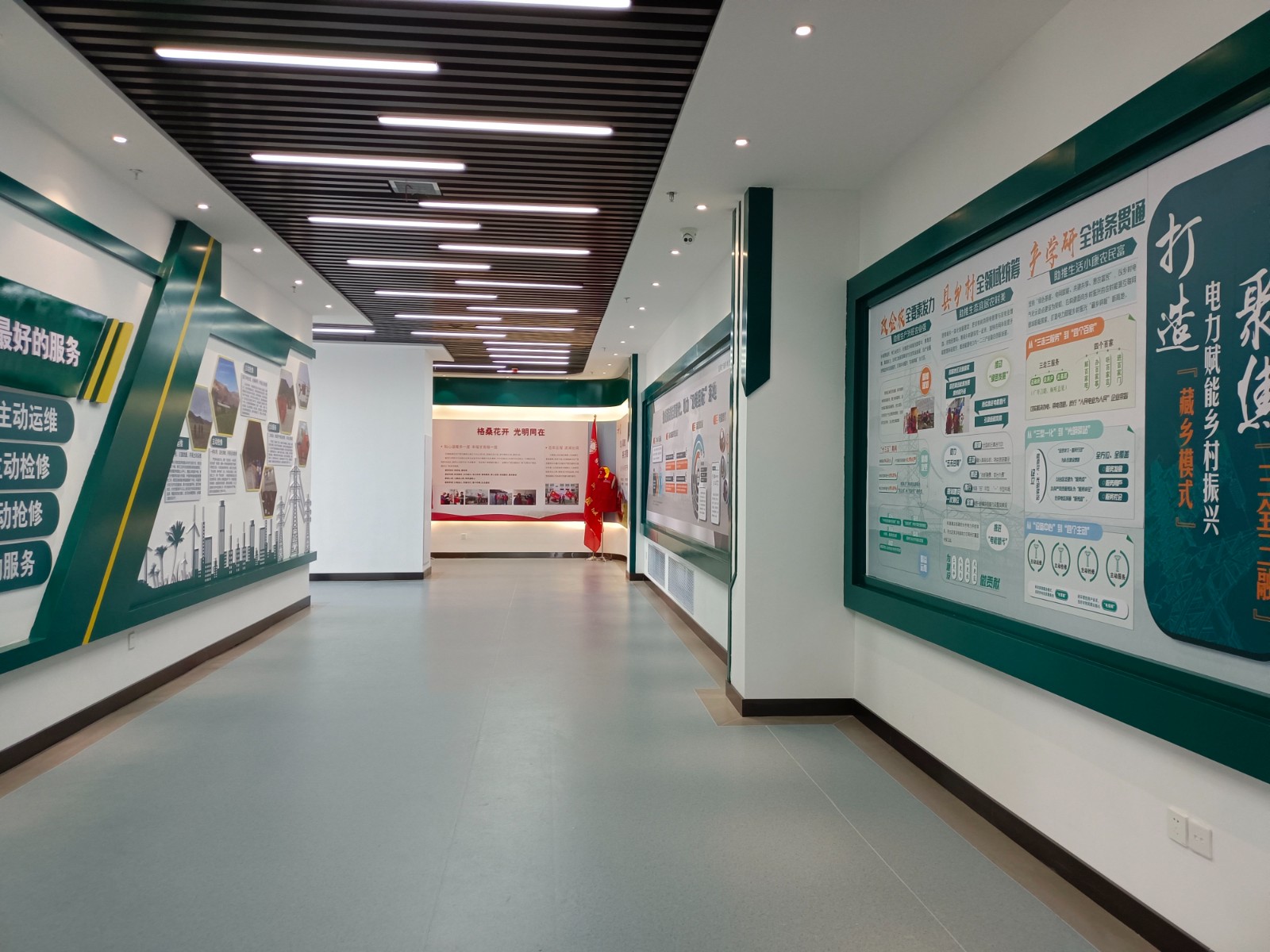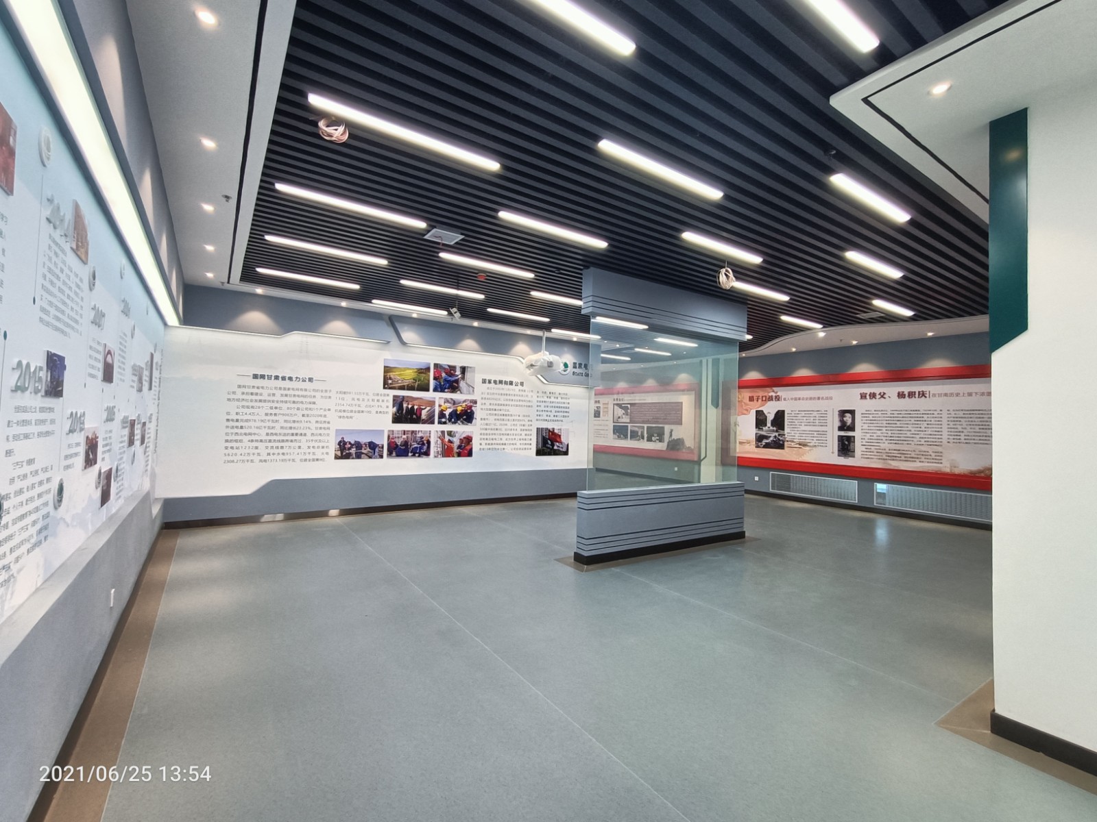 基地一樓為精神文化宣教區(qū)域,共分序言、初心引領(lǐng)、黨旗引頒、紅色甘南黨史教育、電網(wǎng)企業(yè)文化、甘南電力發(fā)展展示、紅色經(jīng)典智慧閱讀等區(qū)域。