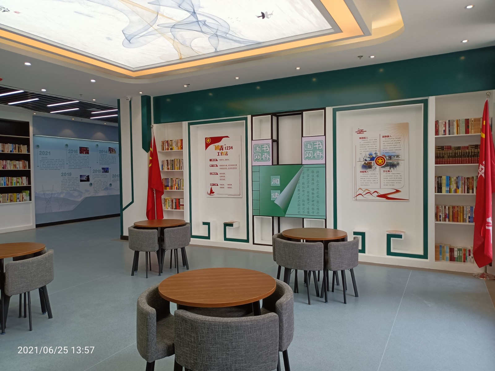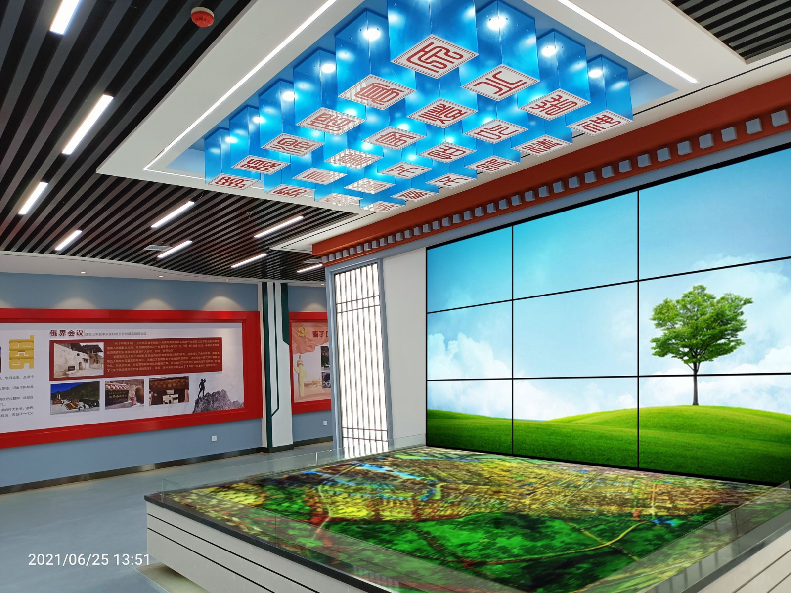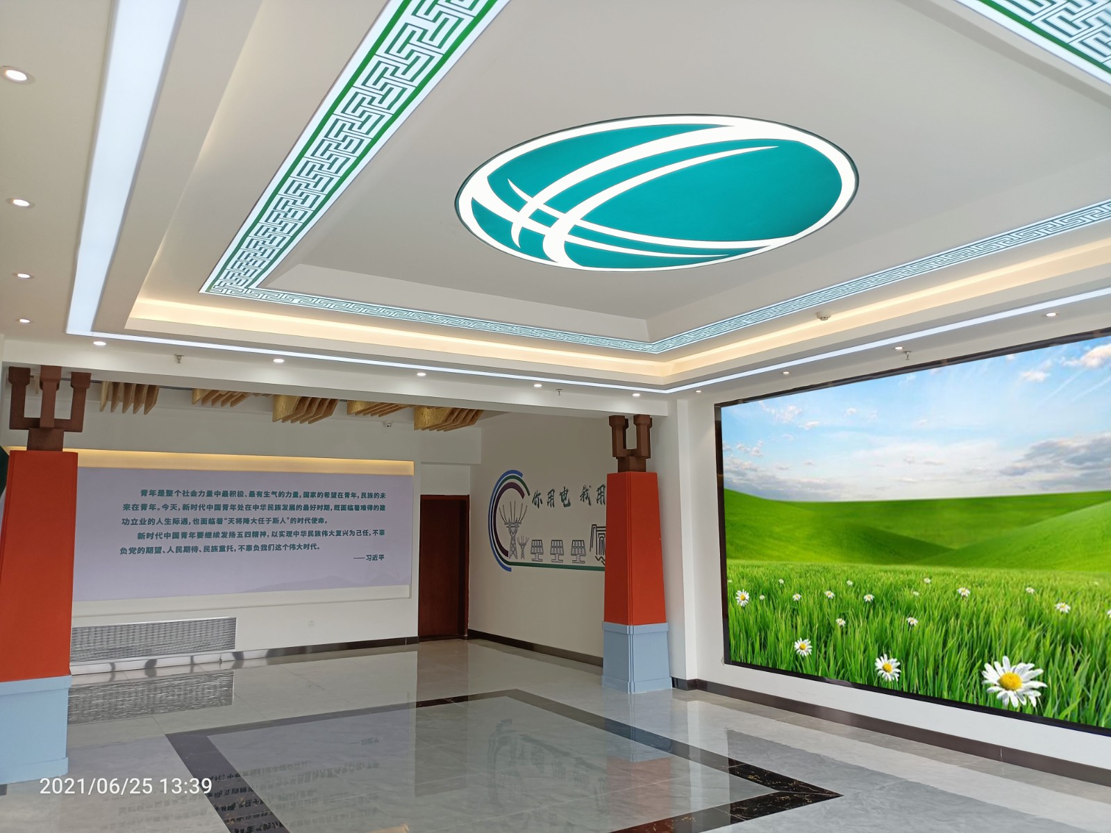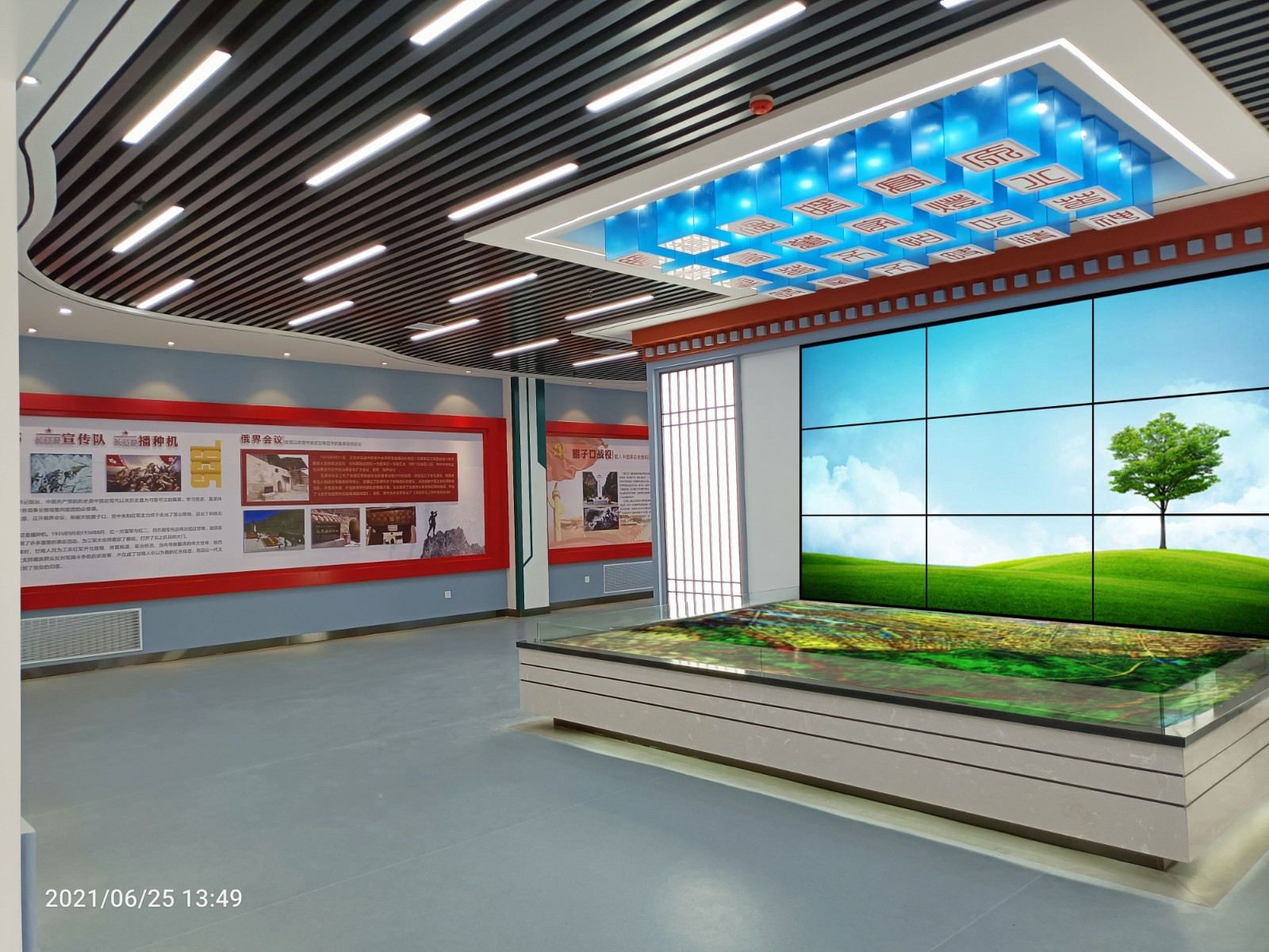 基地一樓為精神文化宣教區(qū)域,共分序言、初心引領(lǐng)、黨旗引頒、紅色甘南黨史教育、電網(wǎng)企業(yè)文化、甘南電力發(fā)展展示、紅色經(jīng)典智慧閱讀等區(qū)域。