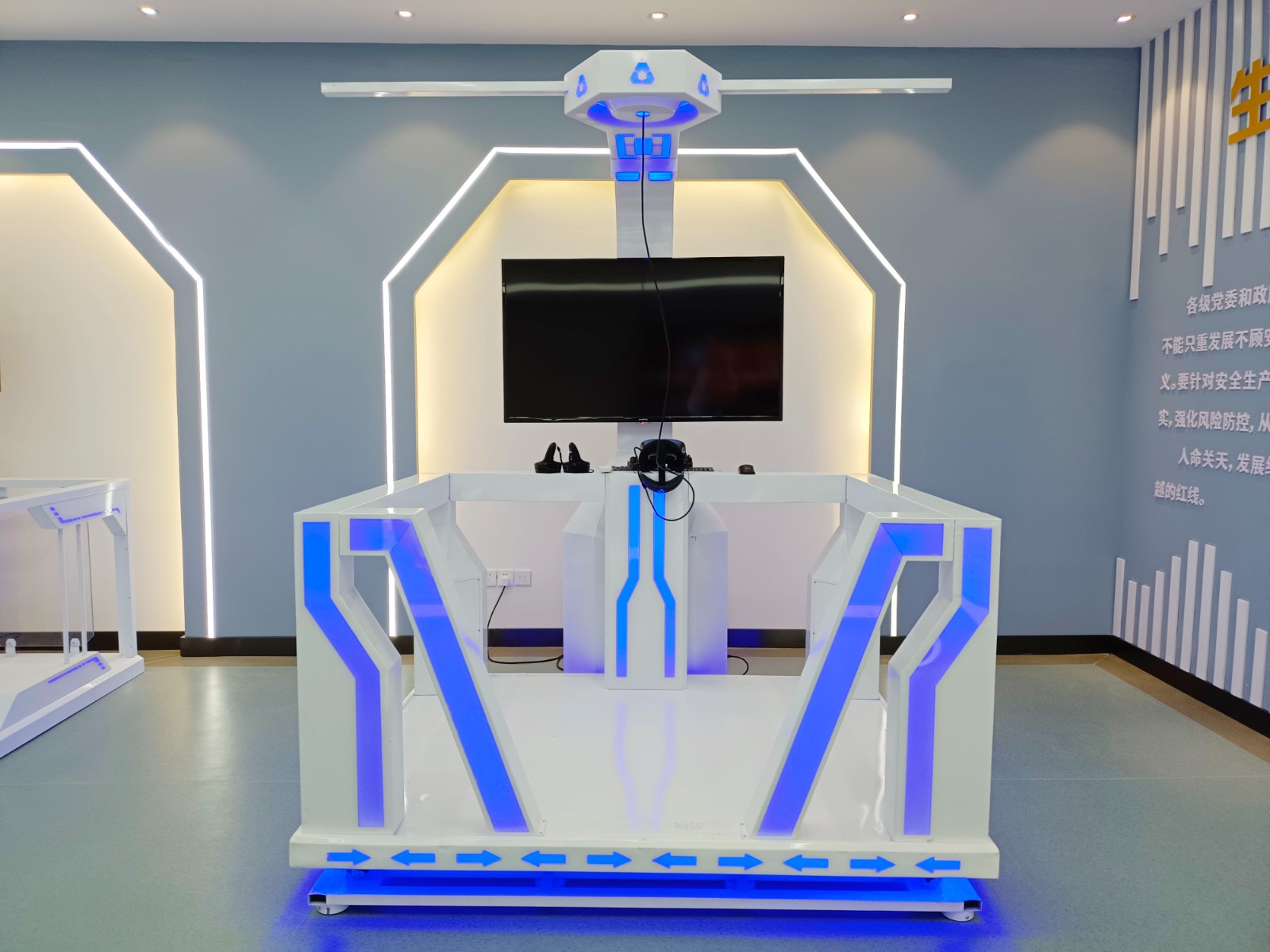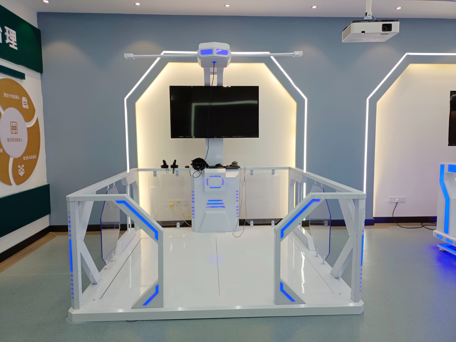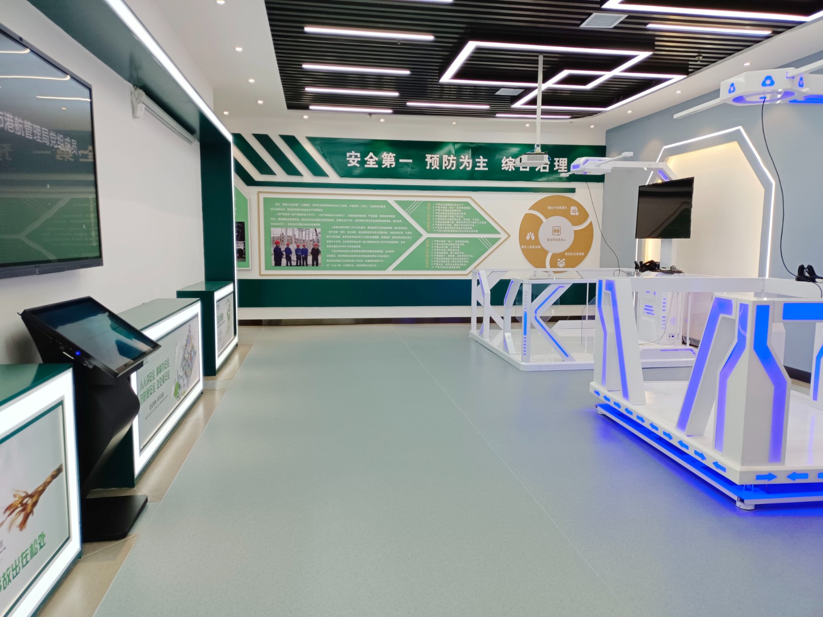 基地二樓為實訓(xùn)活動實操區(qū)域,共分安全VR體驗、無人機模擬實操、電力營銷實訓(xùn)、職工健康運動、學(xué)習(xí)交流多功能廳和創(chuàng)新創(chuàng)效工作窒等區(qū)域。