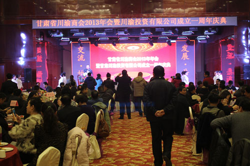 12月20日,甘肅省川渝商會(huì)2013年年會(huì)暨甘肅川渝投資有限公司成立一周年慶典在蘭隆重舉行。當(dāng)天,甘肅省委、省政府、省委統(tǒng)戰(zhàn)部、省工商聯(lián)等相關(guān)領(lǐng)導(dǎo)、甘肅省川渝商會(huì)合作銀行及全國駐甘異地兄弟商協(xié)會(huì)等眾多單位共700余人共聚一堂,蘭州市平?jīng)錾虝?huì)黨支部書記、常務(wù)副會(huì)長郭林生、常務(wù)副會(huì)長樊平參加了慶典活動(dòng)。