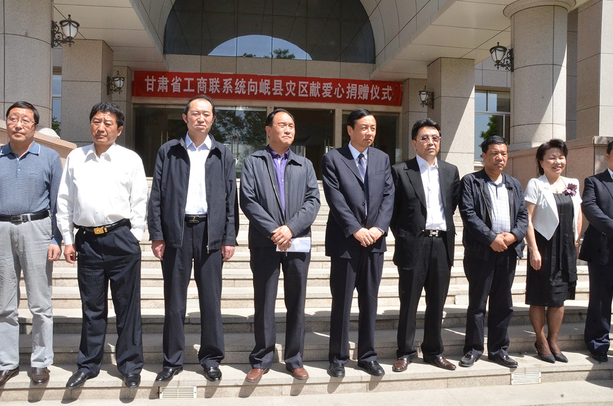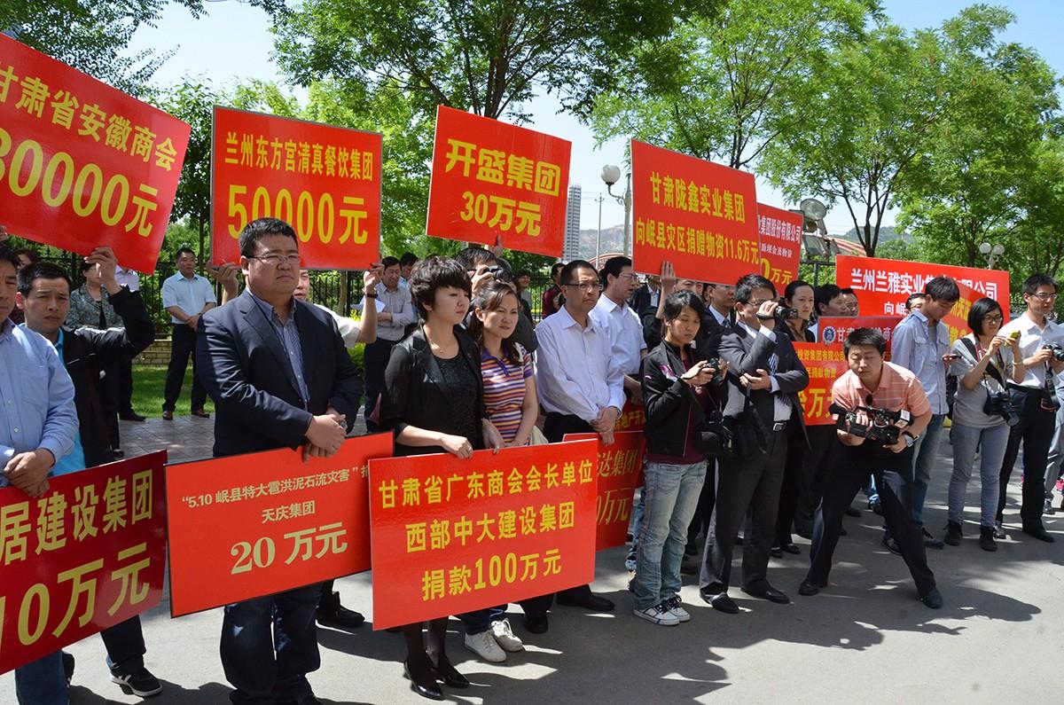甘肅省川渝商會(huì)常務(wù)副會(huì)長(zhǎng)兼秘書長(zhǎng)張建國(guó)代表商會(huì)現(xiàn)場(chǎng)舉牌捐款捐物